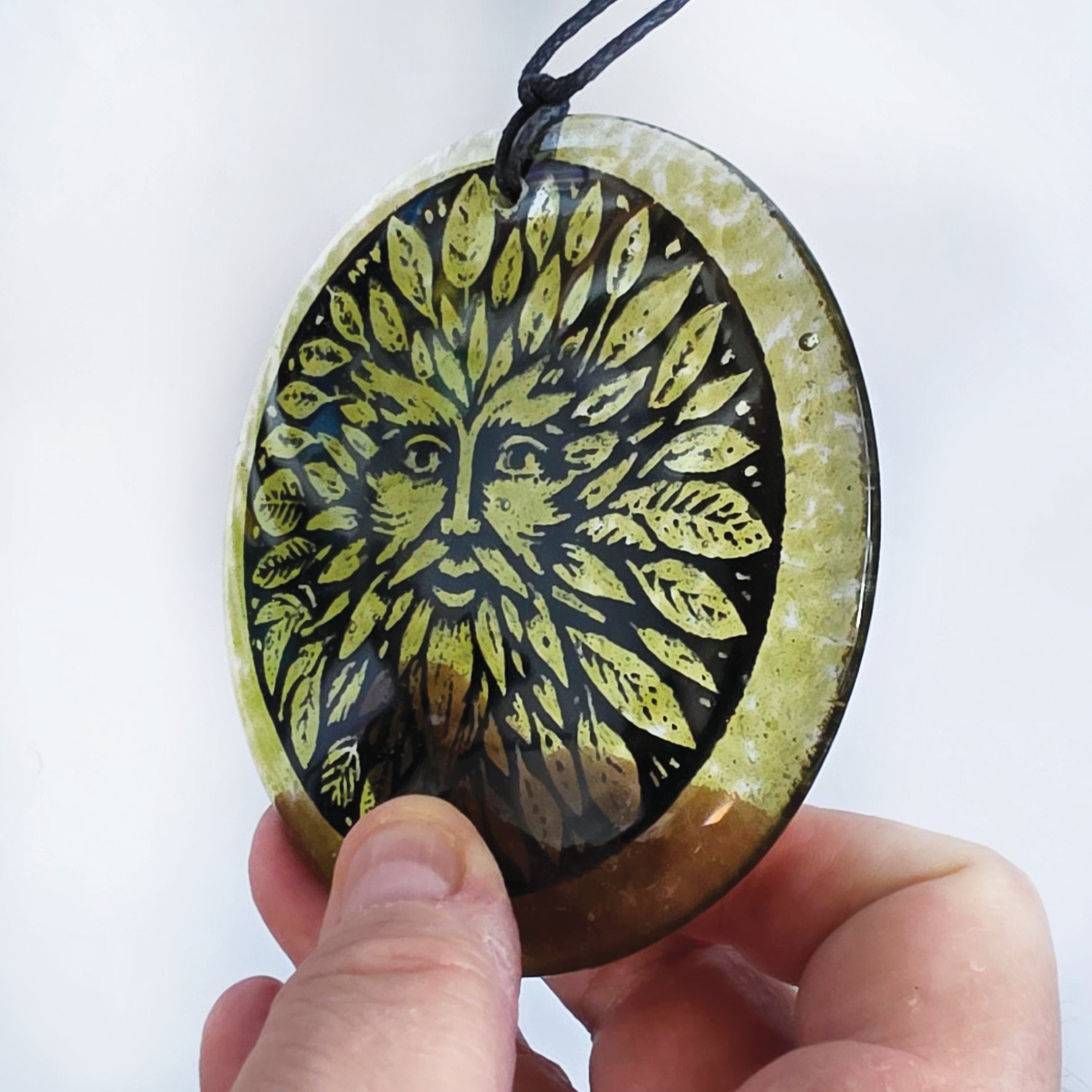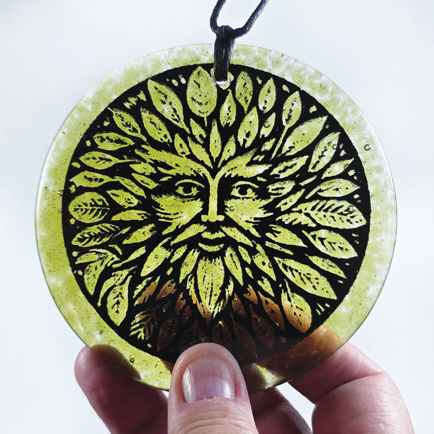 Green man Sun catcher fused glass, Kiln Fired, Gift, glass gift, fused glass hanger, glass gift, Green man, symbol of rebirth, forest spirit