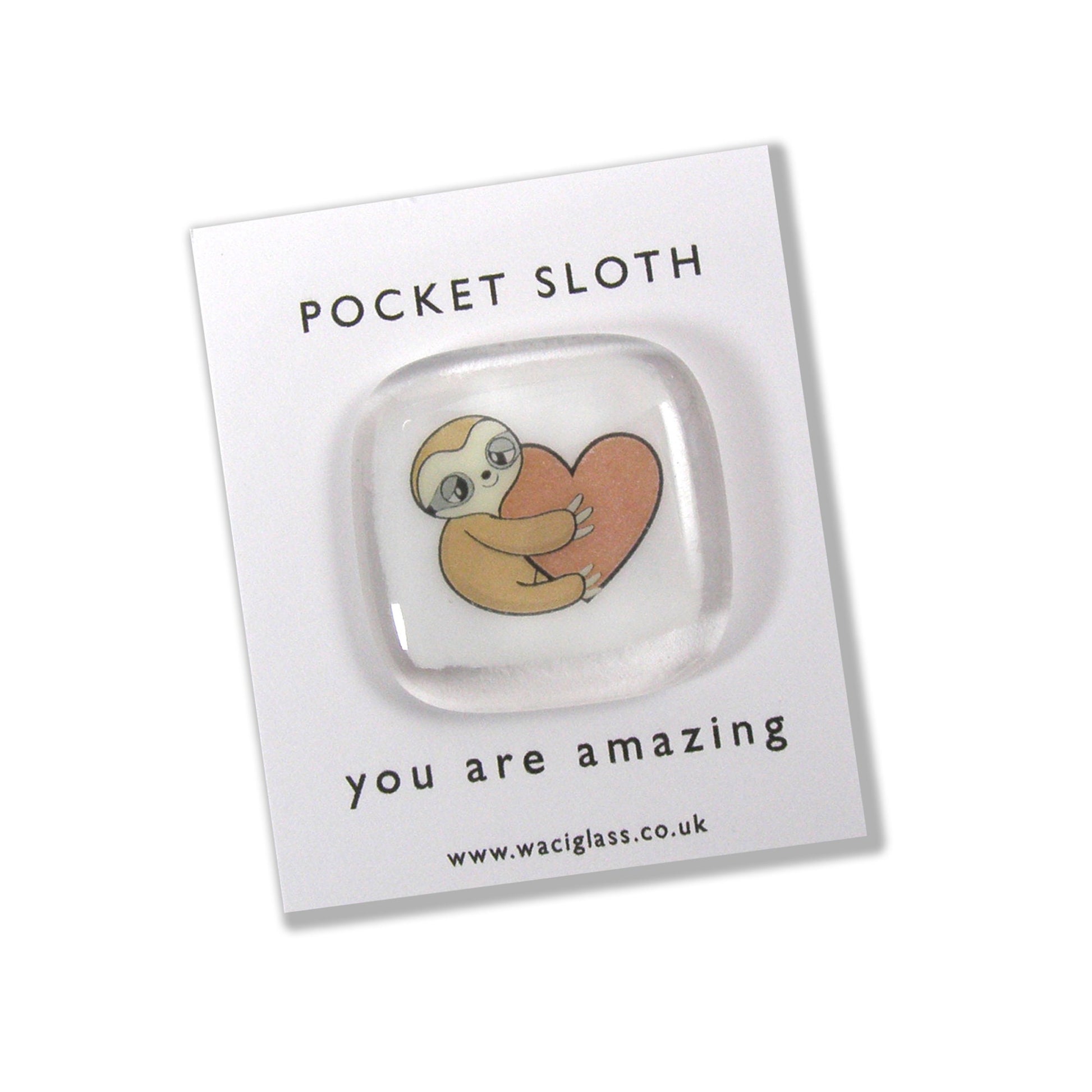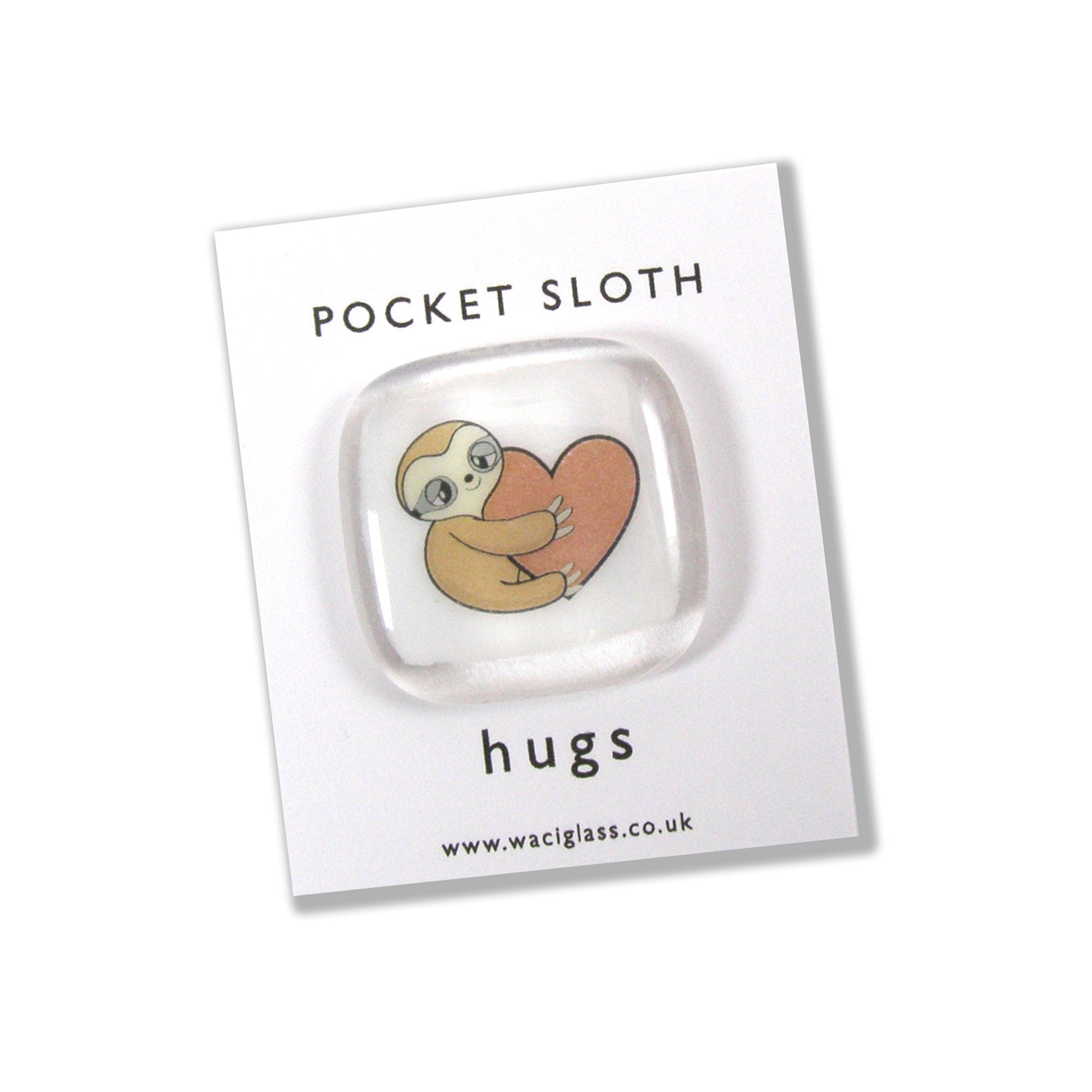 During these unusual times why not send a sloth pocket hug to someone special. These Waci Glass pocket hugs are handmade and have the sloth hugging a heart